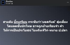 ล่าสุด บิ๊กเกรียนรายงานว่าสายลับกระซิบบอกว่า บอสกันต์ อาจเผชิญความเสี่ยงถูกลดชั้นนักโทษ หรืออาจถูกย้ายเรือนจำ โดยคำให้การของเขาอาจมีผลโยงไปถึงเจ๊ไก่และทนาย ป.ปลา